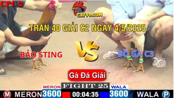 Trận 40 CPC2 4/5/2025 Gà đá giải, hạng cân 3400g Gà đỏ của anh [...]